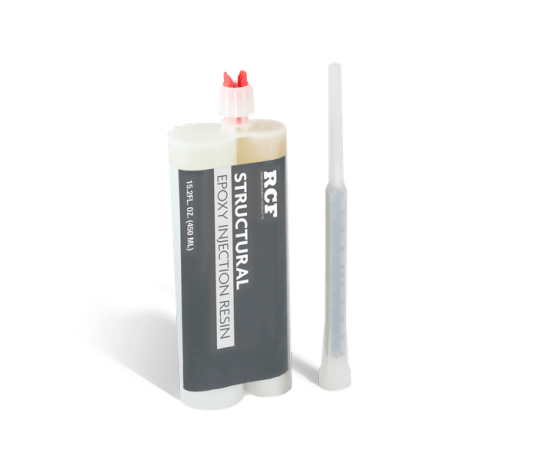 RCF™ Structural Epoxy Injection Resin is uniquely engineered to seal cracks in concrete slabs, walls, masonry, concrete block foundations and other surfaces. RCF™ Structural Epoxy Injection Resin fills every crevasse of a crack and bonds cracks back together. The high-quality and low-viscosity RCF™ Structural Epoxy Injection Resin fills the inside of the crack through injection ports (can also be gravity fed), and the resin cures with high compressive and bond strength (higher than concrete), effectively restoring and reinforcing the structure. RCF™ Structural Epoxy Injection Resin is ideal for any dry surface crack, but if water is present in the area, use RCF™ Polyurethane Injection Expanding Foam.